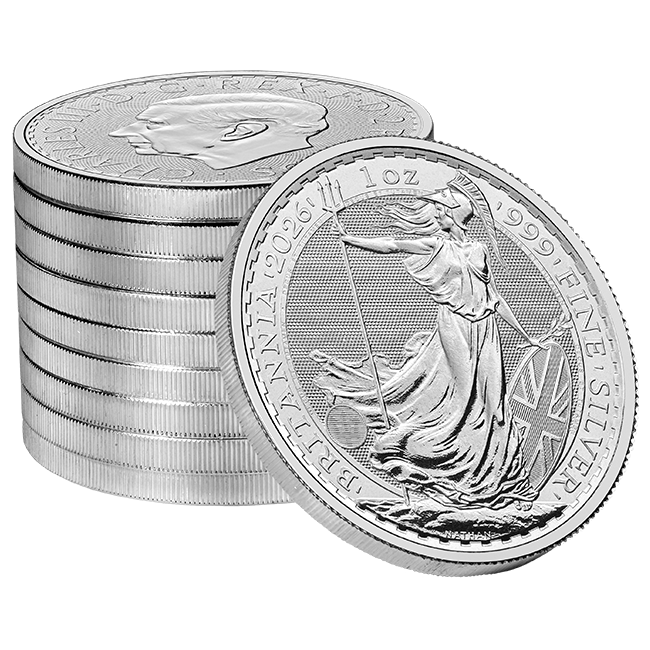 British Silver Britannia coins represent one of the core annual bullion releases from The Royal Mint. First issued in 1997, the Silver Britannia series follows in the footsteps of the Gold Britannia coins, which debuted ten years earlier in 1987. This silver coin program offers a range of weights that include options from 1/10 oz silver all the way up to 1 Kilo silver coins. Today, 2026 1 oz British Silver Britannia Coins are available from Royalty Precious Metals.
